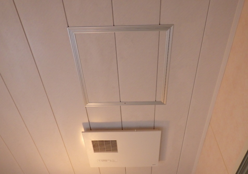 元々の浴室天井には点検口がなく、交換作業や今後の為に点検口も新たに設置し、